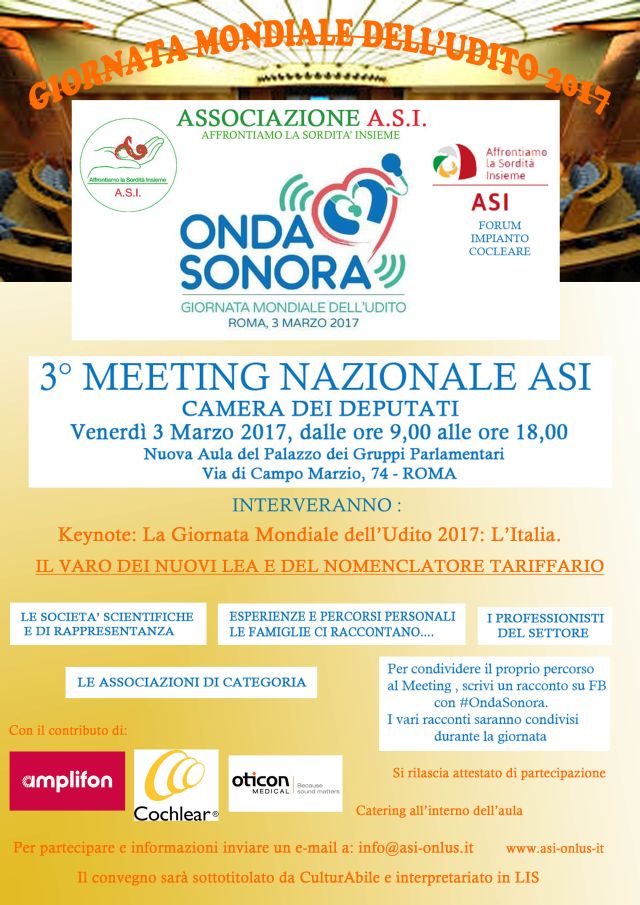 Nel pomeriggio del 1 marzo il convegno ASI in occasione della giornata dell'Udito.